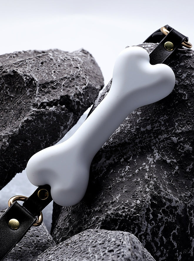 Open Mouth Collar Open Breathable PU Leather Paly Ball for Women Men, Adjustable Strap, Dog Bone Gag