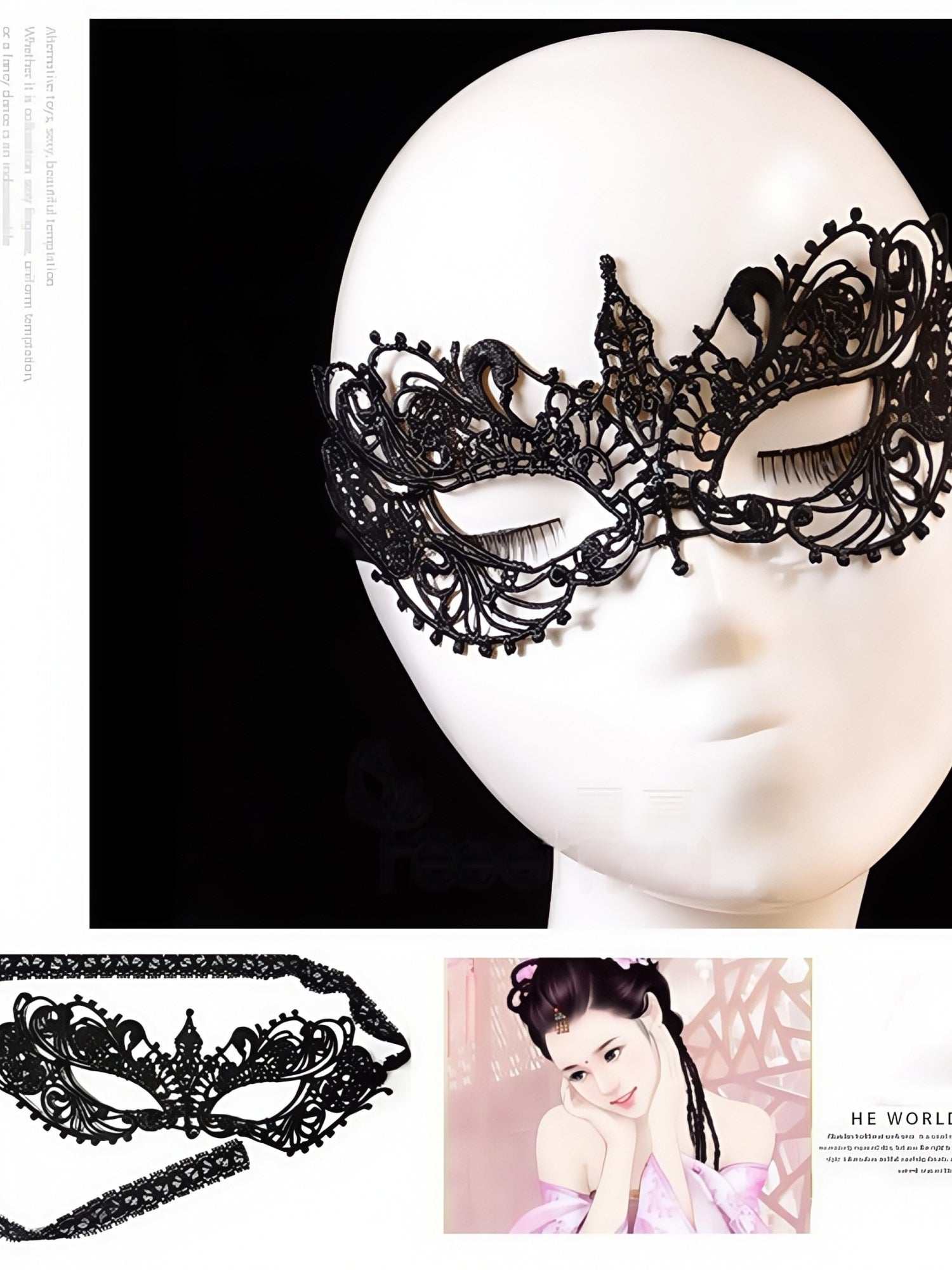 性感蕾丝镂空黑色眼罩女王面具 #7682